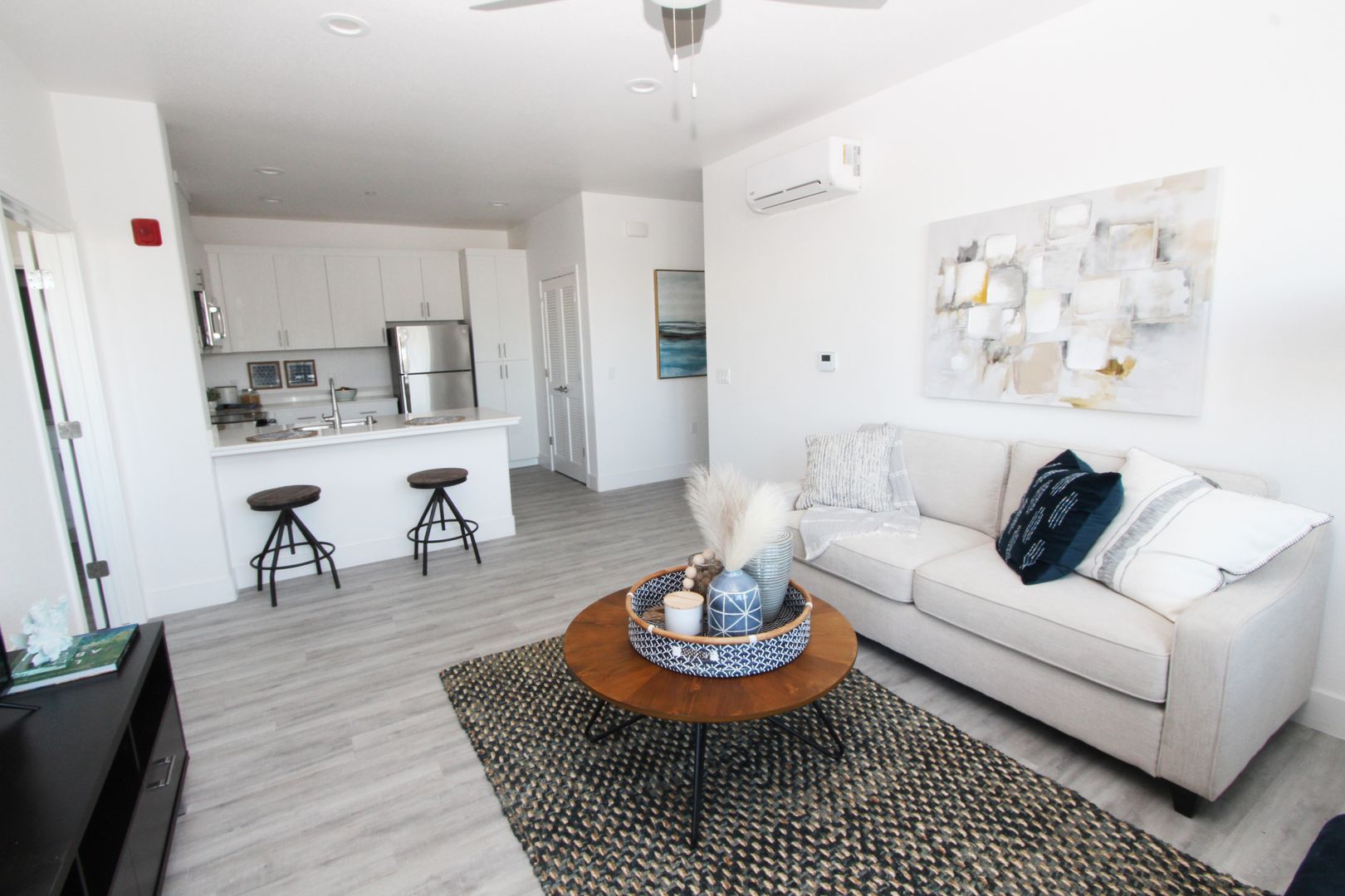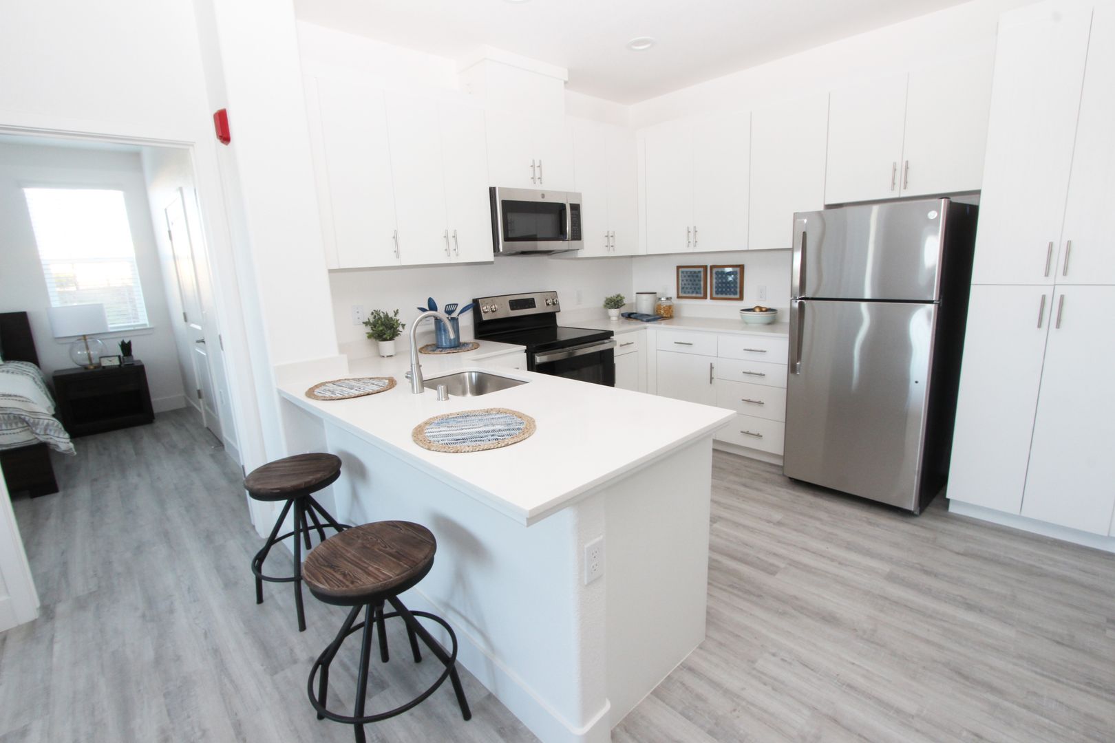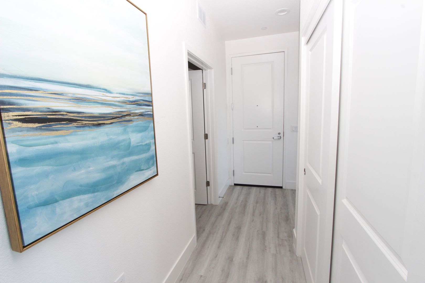 Situated within the well sought out Hollister community, The Apartments at Santana Ranch welcome you home with newly built one- and two- bedroom units. Whether you’re enjoying some solitude on your private balcony or feeling a sense of community at the outdoor BBQ area, fitness center, or walking trails, you’re sure to feel right at home. Each unit offers modern finishes, a full-size washer and dryer, luxury vinyl plank flooring, and air conditioning in a secure gated complex. The apartments are in a highly desirable location adjacent to a large community park, Rancho Santana TK-8 school, and less than two miles from shopping.